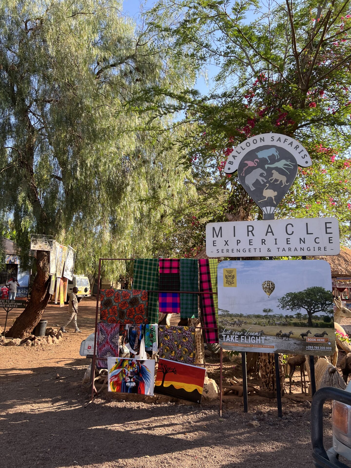 お店には何百というアフリカンアート、マサイの布、木彫りの動物やお面、マサイビーズの工芸品、タンザナイトなどなどとてもたくさんのお土産が所狭しと並んでいました。