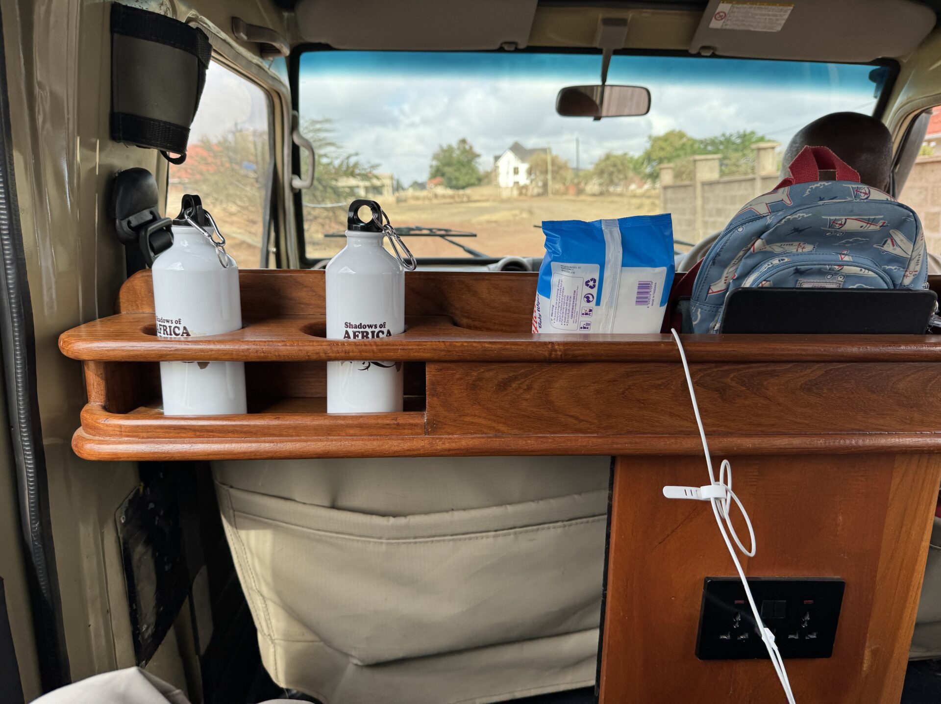 使い捨てのプラスチックが禁止されているタンザニアでは紙製のゴミ袋が車内でとても役に立ちました!